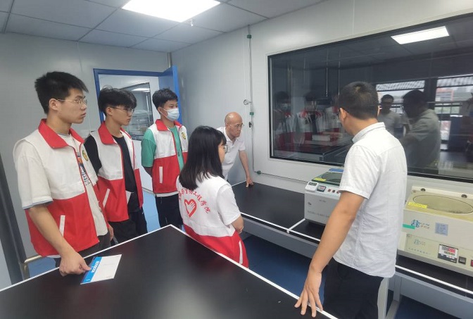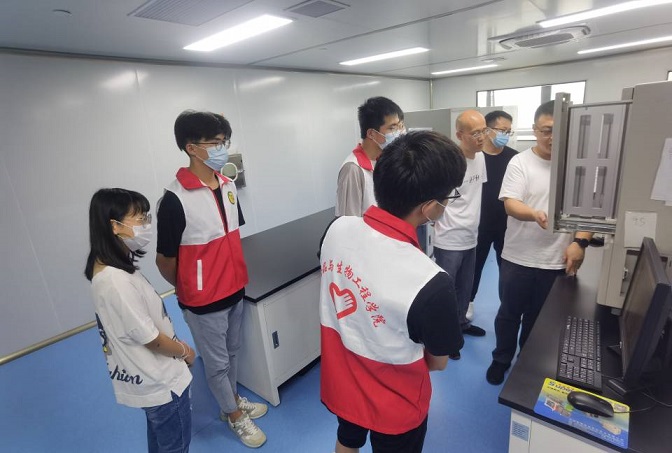 7月19日,各位老师与通用生物公司负责人交流志愿者在实训期间的具体工作流程,并带领志愿者参观介绍公司工作环境。7月20日,志愿者在工作人员的带领下,来到引物合成部门,学习了解了碱基合成、除杂氨解、提纯、质检、包装等多个引物合成步骤。志愿者们通过固相亚磷酰胺三脂法合成引物并通过计算机显示碱基对的颜色、状态来判断引物合成是否成功并记录实验数据,合成并提纯成功后,志愿者们亲手完成包装,发往厂家。在实验室,志愿者与工作人员积极交流,积累经验,认真学习实验操作。7月21日,志愿者两两分组,进入DNA测序实验室、仪器室,志愿者参与实验工程,在破除植物细胞细胞壁并向细胞中注入大肠杆菌来提取质粒,并使用提取后的质粒进行下一步的PCR实验。志愿者们几天的实践表现,获得公司负责人的一致好评,他们表示欢迎志愿者们来公司参加毕业实习和工作。