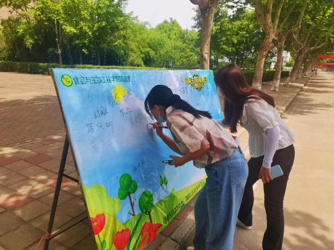 活动最后开展海报签名打卡,在志愿者的引导下,同学们纷纷在展板上留下自己的签名及对保护生物多样性的承诺。活动结束以后同学们纷纷表示,做为大学生要积极参与生物多样性保护,做到低碳出行、拒绝野味,减少对野生动物生存环境的干扰,为推进生态文明建设贡献力量。
