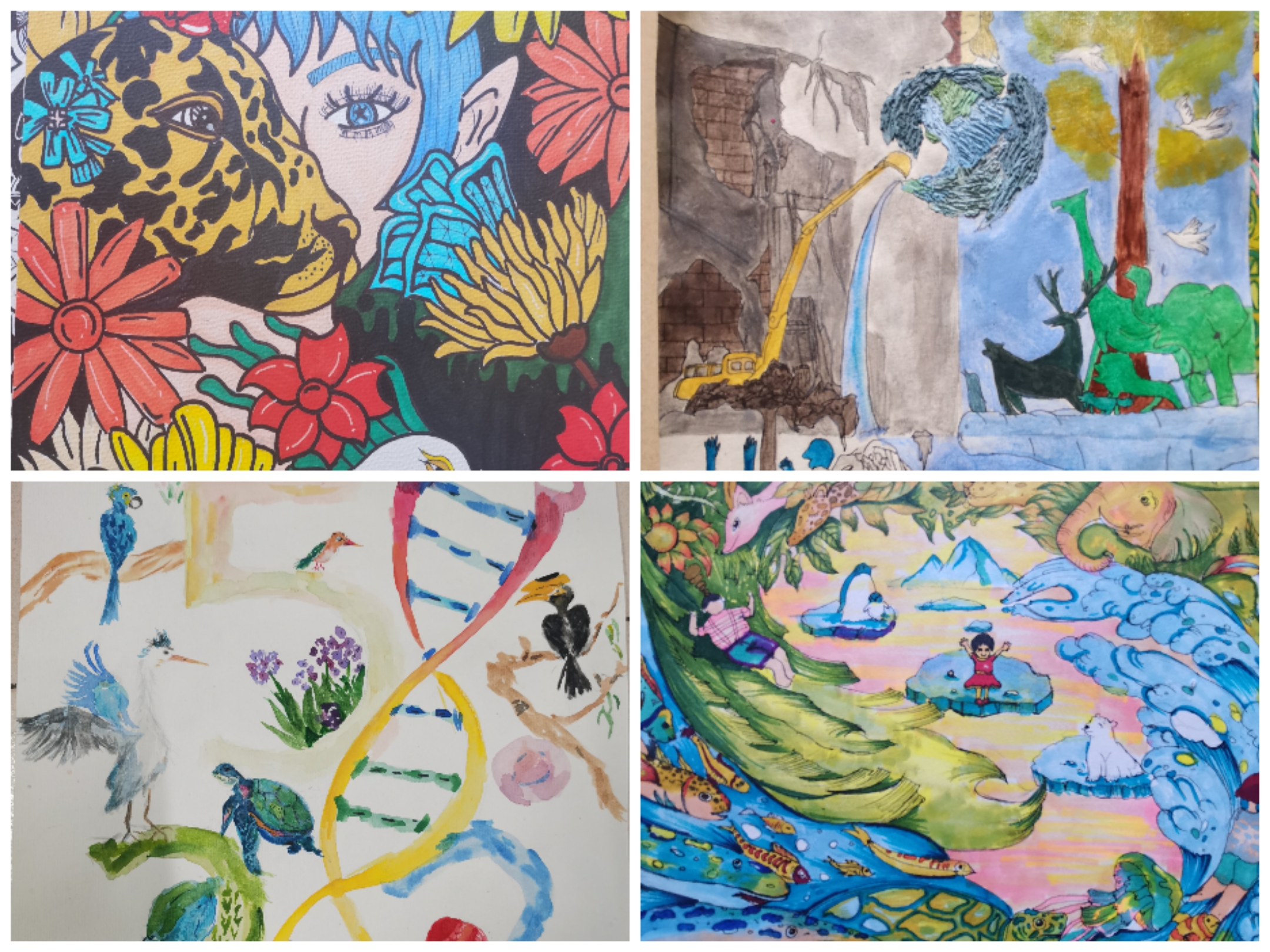 在12日至18日开展“我眼中的生物多样性主题绘画比赛,共收到58组作品,获奖作品在活动现场进行展示,引得行人驻足观看,参赛选手创作生物多样性主题绘画作品,每一幅绘画作品展示的不仅是同学们的想象力和创造力,也体现着同学们对动植物与生态环境的认识。一幅幅作品给大家带来了一场唯美的视觉盛宴,让同学们对生物多样性有更深入的了解。