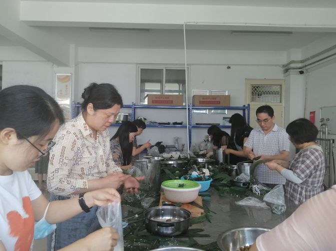 院党委书记、院长张斌首先向参加活动的全体教师致以节日的问候。支部书记石亚中宣读了端午节活动的方案及包粽子比赛评优的规则。开始大家分工协作,浸泡糯米、烫洗粽叶、剪粽叶、按组分发其他包粽子的原辅料。一切前期准备工作完成后,张斌一声令下,宣布包粽子比赛正式开始。活动现场气氛热烈,大家相互帮助、相互学习、相互配合,折粽叶、舀米、放馅、压实、扎绳等。很快,一个个饱满的粽子呈现在大家眼前。