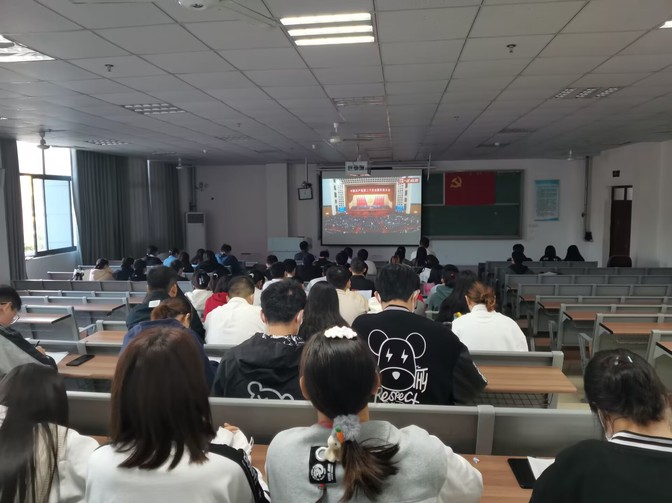 2022年10月16日上午,太阳集团网站8722师生通过网络、广播等多种形式,收看、收听了党的二十大开幕盛况。教师党员、学生党员和团总支学生干部分别在院会议室F1214、教学楼G106、G303和G304集体收看了党的二十大开幕会。