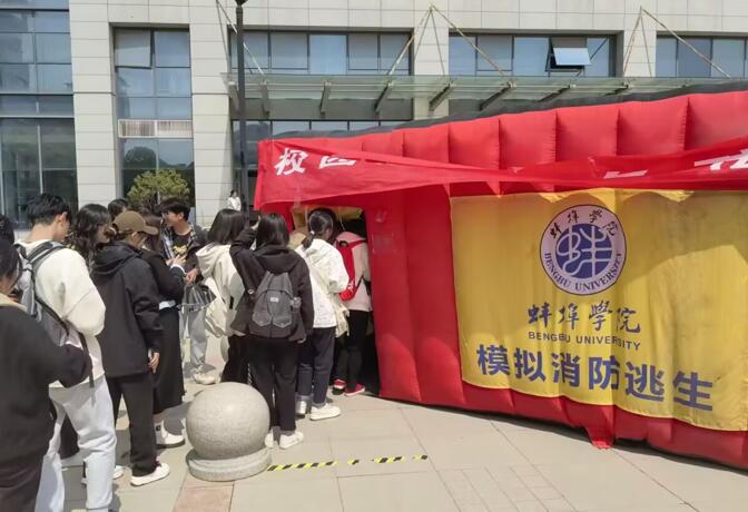 本次演练为突发火情应急避险实操,现场使用充气消防帐篷模拟室内火灾现场。师生到位后,先由相关负责教师指导演练工作进行并向学生科普消防安全知识,后将学生分组有序进入帐篷内,模拟在初期室内火灾环境下的疏散逃生。现场各组学生实践运用“火灾逃生七十二字口诀”,根据逃生出口标志,以匍匐走、捂口鼻的方法有序完成本次模拟火场自救演练。