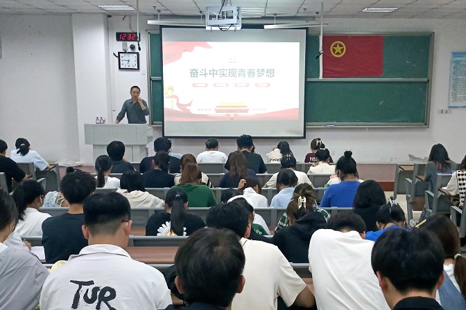 张斌院长表示当代大学生要紧跟党的脚步,从树立远大理想开始,勇挑重担,踏实躬行;理想启明,照亮前进之路;生逢盛世,必将自强不息。张斌列举在坚决打赢疫情防控阻击战阶段的优秀青年,指出在疫情的战场上,不少青年一代的付出令人为之动容,他们面对困难无所畏惧,用自我的青春奋斗为国家为社会为人民做出了巨大贡献。对于青年而言,崇高的理想信念不仅是时代赋予的重托,还是个人前进的不竭动力,作为新时代青年,青年要学会志存高远同时在新时代的浪潮中奋力前进、勇于开拓。