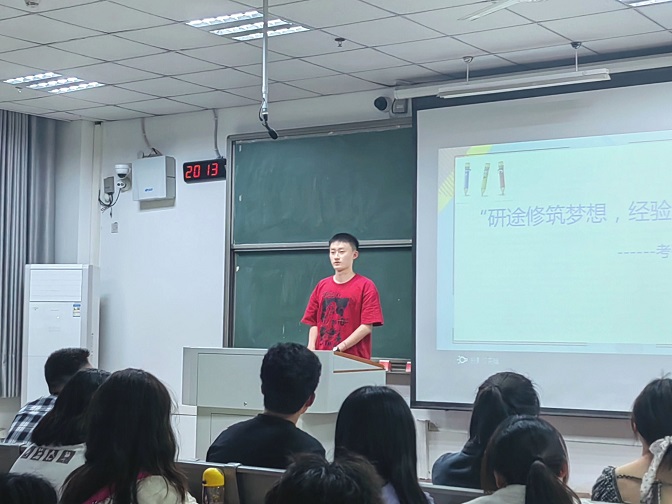 2019级考研学生代表宋立圆、张全成、陈伟豪、李艳、姚旷、金雅立,分别就自身的考研经历进行针对性分享,从不同角度分别讲述考研择校、备考、复试经验,同时分享考研学习计划与考研心路历程。在自由问答环节,同学们根据自身情况提出问题,考研学生代表逐一进行悉心解答。