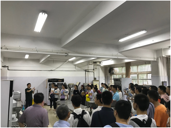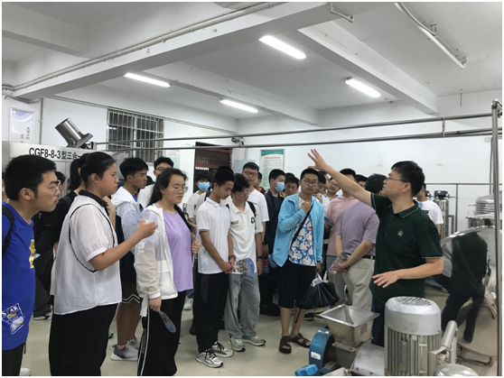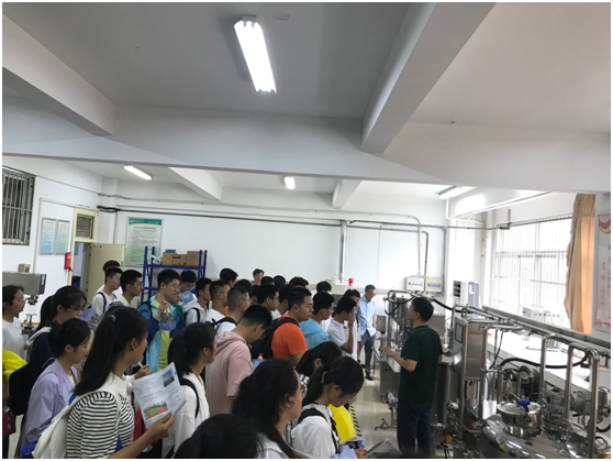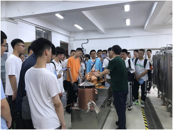 马龙代表学院对萧县中学师生的到来表示热烈欢迎,并介绍了学院及实训中心实验室基本情况。学生们先后参观畜产品生产实训中心、粮油产品生产实训中心、啤酒生产与质量控制实训中心及饮料生产实训中心。马龙全程引导讲解,为同学们分别介绍酸奶、面点、啤酒、饮料等产品的加工流程及加工设备,联系初高中知识深入浅出地解释产品的加工原理,帮助同学们对食品的工业化生产形成全面、形象的认知。马龙同时鼓励同学们好好学习,欢迎同学们报考太阳集团网站8722。(撰稿:叶秋红;编辑:闫利萍;审核:马龙)