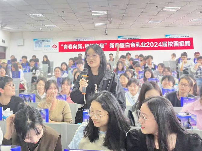 活动当天,安徽新希望白帝乳业公司组织了招聘讲座。招聘讲座上,公司代表详细介绍了公司的历史、发展以及员工培养计划等信息,强调了公司对于创新和团队精神的重视。