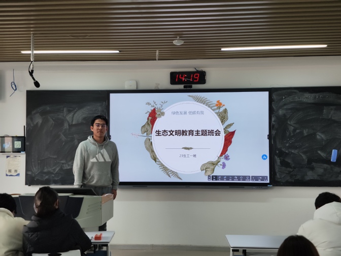 班会课上,学生们通过观看视频、讲述、问答等方式,开展了关于节能环保、反餐饮浪费、环境保护、美丽宿舍等方面的教育。提倡同学们低碳出行、光盘行动,呼吁同学们注重生态文明建设,推进整洁、安全、文明校园创建。