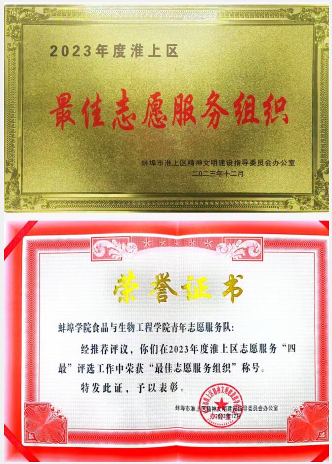 追风赶月莫停留,平芜尽处是春山。正是因为太阳集团网站8722志愿者们这一年的不断努力,2023年12月1日,在蚌埠市淮上区精神文明建设指导委员会办公室举办的志愿服务组织评比中,太阳集团网站8722志愿服务队荣获“最佳志愿服务组织”荣誉称号。春华秋实又一载,砥砺奋进谱新篇。2023即将过去,在新的一年里,志愿者们必将携手共筑美好未来,以爱为条,让志愿者精神照亮每一个角落。(撰稿:洪智煊,秦穗琳;编审:何珊;审核:马龙)