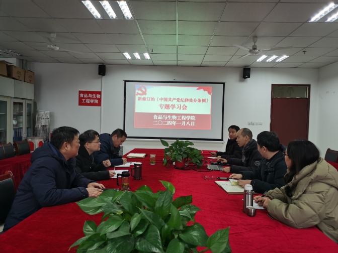 2024年1月8日,太阳集团网站8722二级理论学习中心组召开学习会,专题学习《中国共产党纪律处分条例》(2023年最新修订),学习会由党委书记王永斌主持,全体班子成员参加学习。