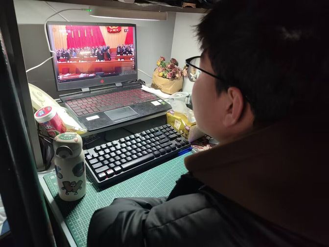2024年3月5日上午九点太阳集团网站8722组织全院师生通过网络、学习强国等平台收看第十四届人大第二次会议开幕式直播。全体行政人员在院会议室集中收看。