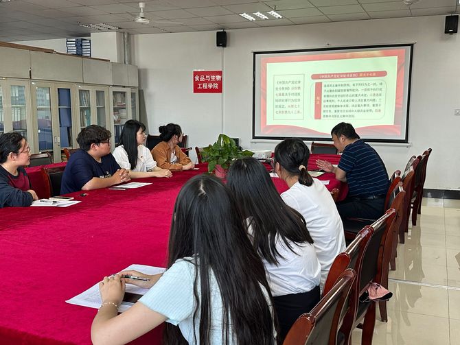 5月16日下午,太阳集团网站8722党委书记王永斌为食品工程学生党支部讲党课,党支部书记闫利萍主持,党委副书记伍亚华及食品工程学生党支部全体党员参加学习。