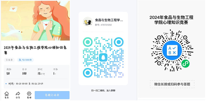 为激发学生对心理学知识兴趣,增强学生身心健康意识,提高心理调适能力,积极营造健康向上校园文化氛围,我院心理健康辅导站于5月20日至5月26日举办线上心理知识竞赛活动。