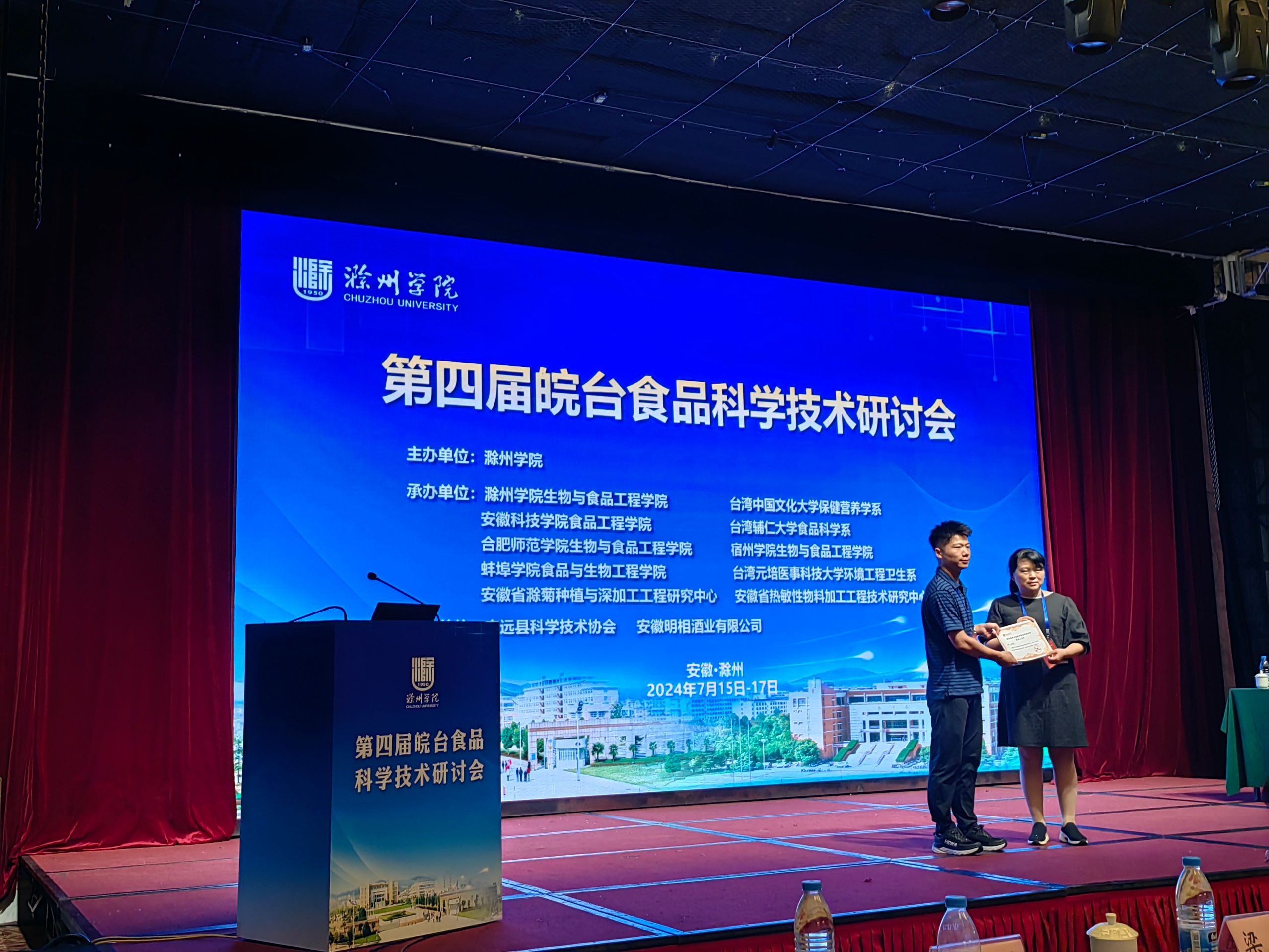 7月15日至17日,由滁州学院主办单位、台湾中国文化大学和台湾辅仁大学等院校共同承办的第四届皖台食品科学技术研讨会在滁州举行。太阳集团网站8722教师汤波博士和钱书意博士受邀参加了会议,并做成果报告。