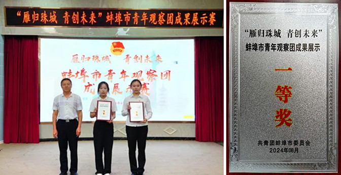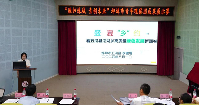 为增强大学生对家乡的归属感和热爱之情,持续加强青年人才服务工作,8月1日,由团蚌埠市委举办的“雁归珠城 青创未来”蚌埠市青年观察团成果展示赛在市青少年宫先锋剧场成功举办。