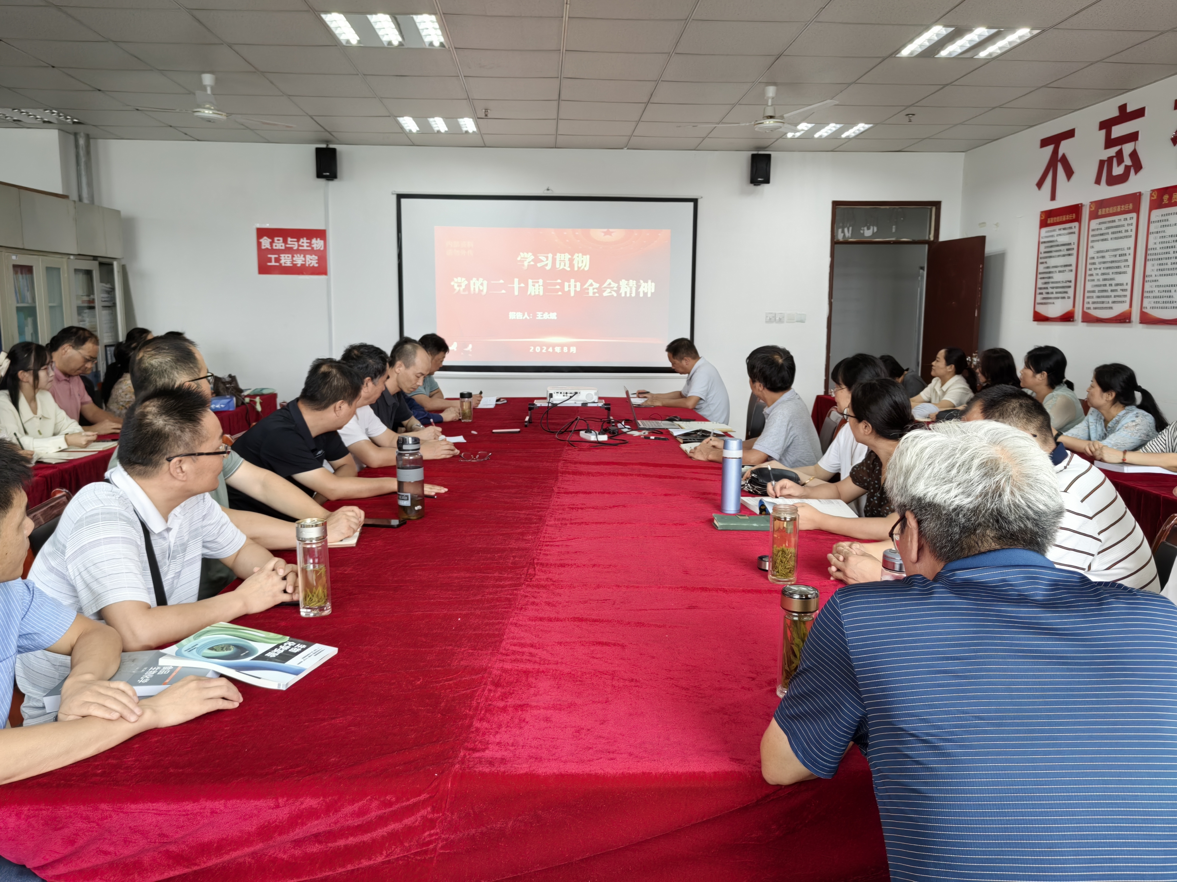 8月28日,食品与生物学院在F1214召开全体教职工会议,党委书记王永斌为全体教职工宣讲党的二十届三中全会精神。