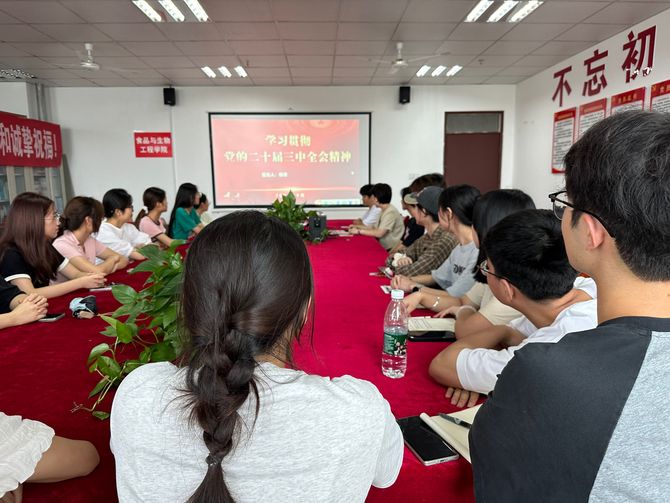 9月13日,食品工程学生党支部邀请思政辅导员杨倩老师在会议室F1214宣讲党的二十届三中全会精神。支部书记闫利萍主持,全体党员及部分积极分子参加。