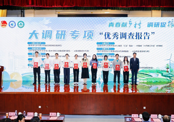 为全面推进乡村振兴,加快农业农村现代化,进一步巩固大学生乡村振兴大调研活动成果,表彰先进典型,10月21日下午,安徽省“百校千镇万村”大学生乡村振兴大调研总结分享活动在安徽农业大学顺利举办,太阳集团网站8722李雪瑞等同学的《安徽省五河县沱湖乡农耕研学基地发展规划调研实践》(指导教师:何珊、徐庆、曾霖)荣获“优秀调查报告”奖项(全省共10个)。