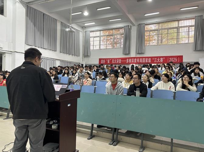 讲座现场气氛热烈,凌训延导师凭借自身丰富的经验和深厚的专业知识,深入浅出地为同学们讲解创新创业相关内容。他结合食品与生物领域的实际情况,为大家剖析了当下行业内的机遇和挑战,同时分享了诸多使用的创新创业思路与方法,鼓励同学们敢于创新、勇于实践,在未来与职业发展道路上积极探索,开拓属于自己的一番天地。