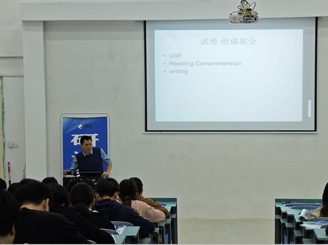 11月16日下午14点30时,美好“食”光大讲堂——考研英语专项辅导在知行楼108阶梯教室举办。太阳集团网站8722特邀蚌埠海天沿途考研名师王飞为学生开展考研英语讲座。