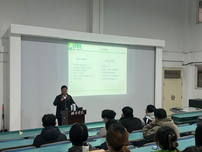 吴恒通过生动的PPT和精彩的故事讲解,深入阐释了企业的发展历程、核心价值观和愿景使命。从初创时的艰难拼搏到如今的行业领先地位,每一个关键节点都让学生们深刻感受到企业的坚韧与创新精神。丰原企业秉持的“诚信,创新,卓越,合作,精诚智和,务实创新”价值观,不仅是企业发展的基石,更是员工共同遵循的行为准则,这引发了在场学生对职场价值观的深入思考。在讲座中,吴恒为同学们讲述了企业的核心管理理念:“三公”公开、公正、公平,“四严”严格管理、严而有情、严而有信、严而公正,“四以”以身作则、以德服人、以理服人、以技服人。为今后同学们进入职场,成为行业的管理人打下一定的基础。