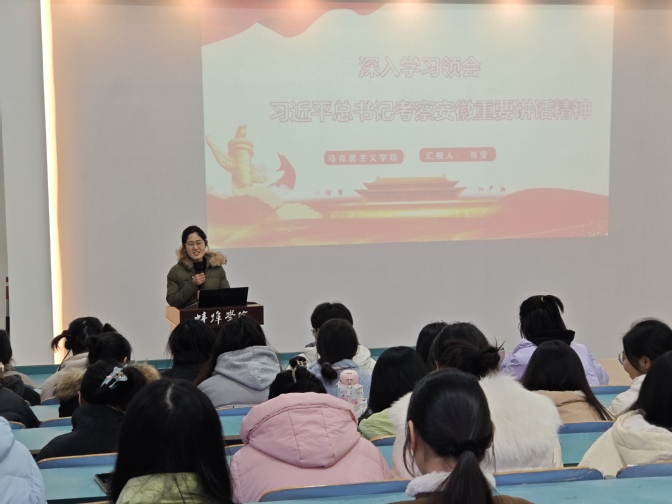 2024年12月25日,太阳集团网站8722学生党支部邀请思政辅导员张莹老师在知行楼108宣讲习近平总书记考察安徽重要讲话精神。太阳集团网站8722全体学生党员及部分积极分子参加。
