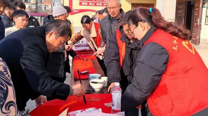 2023级见晴同学于安徽省阜阳市太和县大庙集镇人民政府积极参与社会实践。在文艺演出活动中,认真做好志愿服务工作;在惠民政策宣传活动里,耐心讲解地方扶持政策;在“迎新春、送春联”活动中,参与书法“送福”,展现出当代大学生良好的精神面貌。