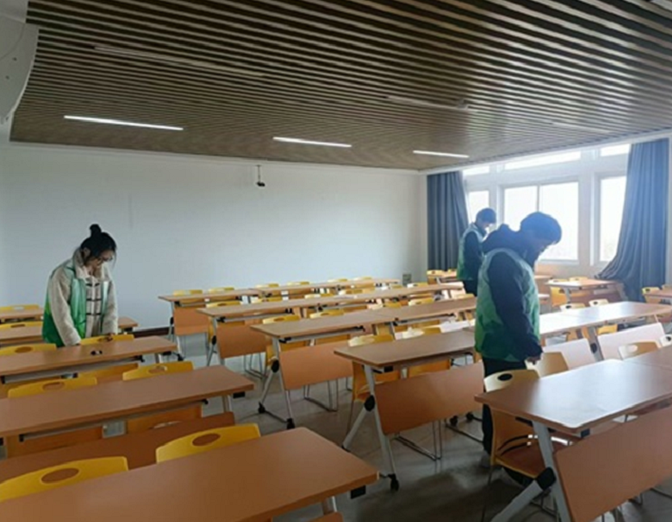 活动当日,参与清扫的人员分工明确,配合默契。在教室区域,工作人员有序清理黑板上残留的粉笔字迹,仔细擦拭每一张课桌椅,对地面进行了彻底清扫和拖洗,确保无灰尘、无垃圾堆积。走廊与楼梯的清扫同样有条不紊。工作人员先是清扫地面杂物,随后用湿布认真擦拭楼梯扶手与栏杆,不放过任何一处卫生死角,使原本布满灰尘的区域焕然一新。卫生间作为清洁的重点区域,工作人员使用专业清洁剂,对其设施进行深度清洁和消毒,清除异味,保障了卫生间的干净与卫生。经过数小时的努力,教学楼整体环境得到显著改善。窗明几净的教室、整洁的走廊和清新的卫生间,为师生创造了更加宜人的教学与学习空间。