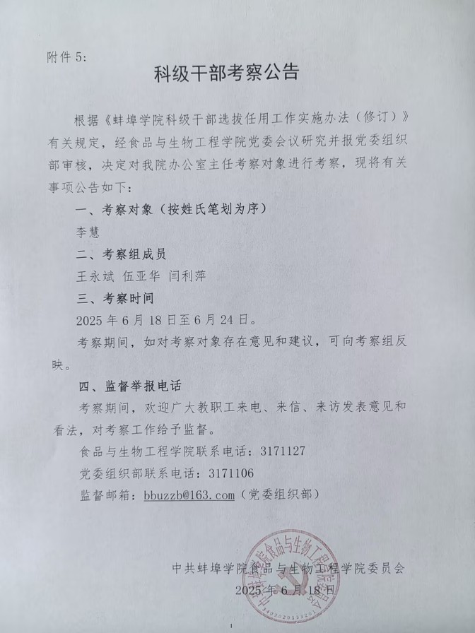科级干部考察公告