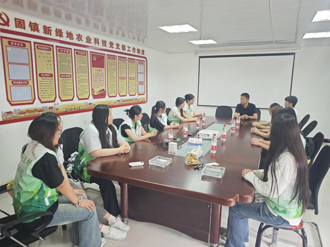 为深入了解安徽省新绿地农业科技有限公司发展历程及未来发展规划,以及企业对地方发展的重要贡献,实践团队来到固镇与企业负责人王汉开展面对面座谈。双方积极交流探讨安徽省新绿地农业的发展历程和未来发展规划,合力为新绿地农业发展规划提供新想法。
