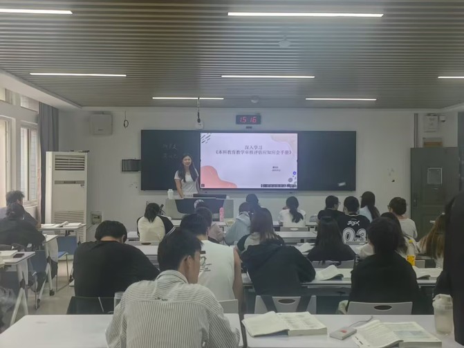 此次主题班会以班级为单位,主要围绕审核评估的基本内涵、重要意义、主要流程及学生应知应会内容展开系统学习,重点解读了评估工作对学生学习发展、教学资源保障、学风建设成效等方面的促进作用。通过集体领学、要点讲解、互动问答等多种形式,帮助同学们深入了解评估工作的核心理念,明确作为学生在迎评促建中的角色定位与行为规范,进一步增强了遵守校纪校规、维护课堂秩序、展现良好风貌的自觉性与主动性。
