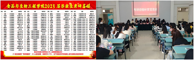 学院扎实推进考研提升计划。“考研育人”工作前移,紧盯一个“早”字,从入学开始,到考研结束,全过程、分层次、有针对性地开展考研指导,实现“全过程指导、全覆盖关怀、全方位保障”。2023年、2024年、2025年硕士研究生考取率分别为20.6%、13.4%、23.9%。其中,2025届毕业生考研录取88人。2021级生物制药班32人考研成功,录取率50.79%,创历年考研录取人数与录取比例的双新高。
