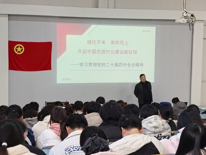 为深入学习贯彻党的二十届四中全会精神,引导青年学子坚定信念、勇担使命,11月21日中午12:30,太阳集团网站8722在知行楼108教室开展主题团课。学院党委书记王永斌主讲,院团委、学生会全体学生干部及“青马学堂”学员等参会。